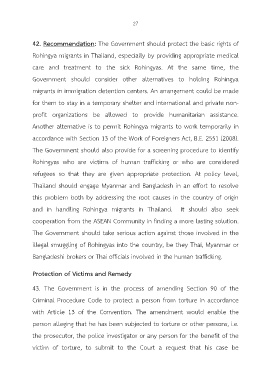 42. Recommendation: The Government should protect the basic rights of