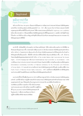 ไว้ในหลักการปารีสได้กลายเป็นบรรทัดฐานส�าคัญซึ่งเป็นที่ยอมรับในระดับสากลของคุณลักษณะและบทบาทของสถาบัน