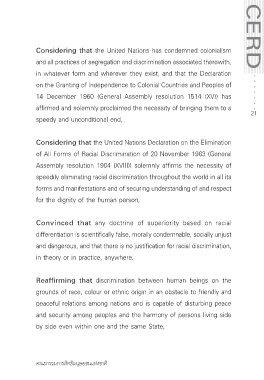Page 22 - หลักกฎหมายระหว่างประเทศทั่วไปเกี่ยวกับสนธิสัญญาด้านสิทธิมนุษยชน, อนุสัญญาว่าด้วยการขจัดการเลือกประติบัติทางเชื้อชาติในทุกรูปแบบ