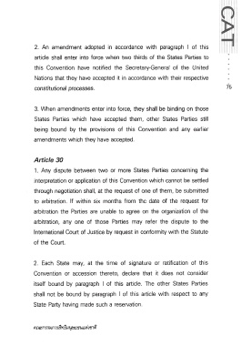 Page 76 - หลักกฎหมายระหว่างประเทศทั่วไปเกี่ยวกับสิทธิมนุษยชน, อนุสัญญาต่อต้านการทรมานและการประติบัติหรือการลงโทษอื่นที่โหดร้ายไร้มนุษยธรรม หรือที่ย่ำยีศักดิ์ศรี