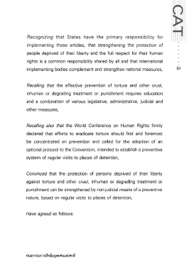 Page 92 - หลักกฎหมายระหว่างประเทศทั่วไปเกี่ยวกับสิทธิมนุษยชน, อนุสัญญาต่อต้านการทรมานและการประติบัติหรือการลงโทษอื่นที่โหดร้ายไร้มนุษยธรรม หรือที่ย่ำยีศักดิ์ศรี