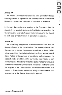 Page 96 - หลักกฎหมายระหว่างประเทศทั่วไปเกี่ยวกับสนธิสัญญาด้านสิทธิมนุษยชน, อนุสัญญาว่าด้วยสิทธิเด็ก