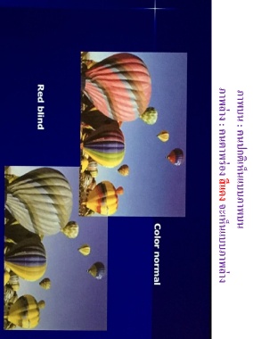 ภาพบน : คนปกติเห็นแบบภาพบน ภาพล่าง : คนตาพร่อง สีแดง จะเห็นแบบภาพล่าง