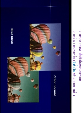ภาพบน : คนตาปกติเห็นแบบภาพบน ภาพล่าง : คนตาพร่อง สีน ้าเงิน เห็นแบบภาพล่าง