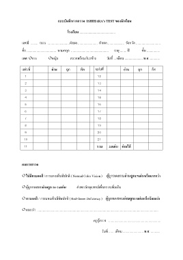แบบบันทึกการตรวจ ISHIHARA’s TEST ของนักเรียน