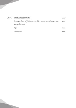 บทที่ ๖ บทสรุปและข้อเสนอแนะ ๑๙๘ ข้อเสนอแนะในการปฏิบัติถึงแนวทางการมีส่วนร่วมของประชาชนในการก�าหนด ๒๐๖ แนวเขตที่ดินของรัฐ สรุป ๒๑๐ บรรณานุกรม ๒๑๓