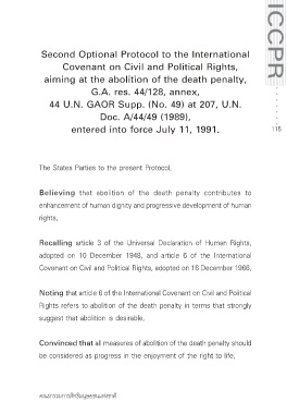 Page 116 - หลักกฎหมายระหว่างประเทศทั่วไปเกี่ยวกับสนธิสัญญาด้านสิทธิมนุษยชน, กติการะหว่างประเทศว่าด้วยสิทธิพลเมืองและสิทธิทางการเมือง