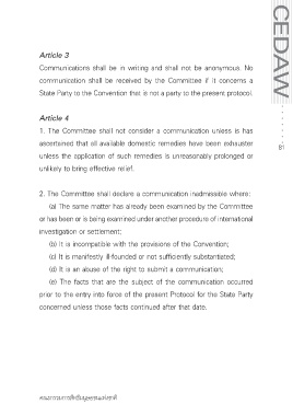 Page 82 - หลักกฎหมายระหว่างประเทศทั่วไปเกี่ยวกับสนธิสัญญาด้านสิทธิมนุษยชน ; อนุุสัญญาว่าด้วยการขจัดการเลือกประติบัติต่อสตรีในทุกรูปแบบ ; พิธีสารรับเลือกของอนุสัญญาว่าด้วยการขจัดการเลือกประติบัติต่อสตรีในทุกรูปแบบ