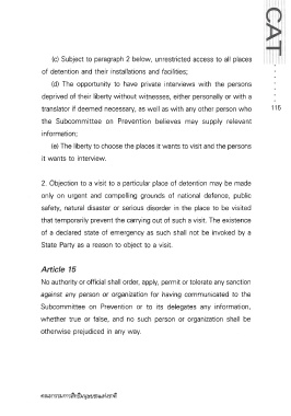 Page 116 - หลักกฎหมายระหว่างประเทศทั่วไปเกี่ยวกับสิทธิมนุษยชน, อนุสัญญาต่อต้านการทรมานและการประติบัติหรือการลงโทษอื่นที่โหดร้ายไร้มนุษยธรรม หรือที่ย่ำยีศักดิ์ศรี
