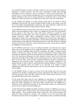 trafficking in each province. The shelter should be the first location for the victims to stay and