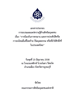 Page 2 - เอกสารประกอบการอบรมเผยแพร่ความรู้ด้านสิทธิมนุษยชน เรื่อง "การป้องกันการทรมาน และการประติบัติหรือการลงโทษอื่นที่โหดร้าย ไร้มนุษยธรรม หรือที่ย่ำยีศักดิ์ศรีในประเทศไทย"