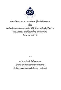 Page 2 - สรุปผลโครงการอบรมเผยแพร่ความรู้ด้านสิทธิมนุษยชน เรื่อง การป้องกันการทรมานและการประติบัติ หรือการลงโทษอื่นที่โหดร้ายไร้มนุษยธรรม หรือที่ย่ำยีศักดิ์ศรีในประเทศไทย ปีงบประมาณ 2558