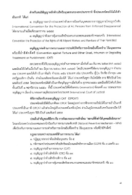 Page 63 - สรุปผลโครงการอบรมเผยแพร่ความรู้ด้านสิทธิมนุษยชน เรื่อง การป้องกันการทรมานและการประติบัติ หรือการลงโทษอื่นที่โหดร้ายไร้มนุษยธรรม หรือที่ย่ำยีศักดิ์ศรีในประเทศไทย ปีงบประมาณ 2558