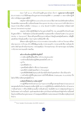 มิติของการเลือกปฏิบัติ (Area of Discrimination) ประกอบด้วย การท�างาน กิจกรรมการศึกษา
