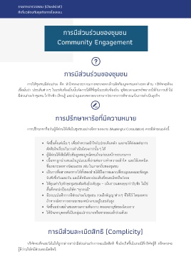 มีส่วนร่วมกับชุมชน ไปรับฟัง เรียนรู้ และนำามุมมองของพวกเขามาประกอบการพิจารณาในการดำาเนินธุรกิจ