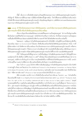 ซึ่งมีเนื้อหารับรองสิทธิในสิ่งแวดล้อมที่ดีเช่นนี้ย่อมส่งผลต่อแนวทางการตีความของคณะกรรมการสิทธิมนุษยชนของ