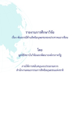 รายงานการศึกษาวิจัย เรื่อง พันธกรณีด้านสิทธิมนุษยชนของประชาคมอาเซียน โดย มูลนิธิสถาบันวิจัยและพัฒนาองค์กรภาครัฐ ภายใต้การสนับสนุนงบประมาณจาก ส�านักงานคณะกรรมการสิทธิมนุษยชนแห่งชาติ