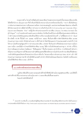ฝ่ายเลขานุการของ AICHR สังกัดฝ่ายอ�านวยการ (ทั้งที่ AICHR มีหน้าที่ตามเอกสารก�าหนดขอบเขตอ�านาจหน้าที่ (TOR)