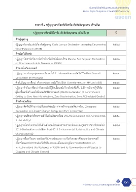 ตารางที่ ๓ ปฏิญญาอาเซียนที่เกี่ยวข้องกับสิทธิมนุษยชน (ด้านอื่น)