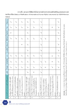 ตารางที่ ๖ สถานะการให้สัตยาบันในตราสารหลักระหว่างประเทศด้านสิทธิมนุษยชนของประเทศ