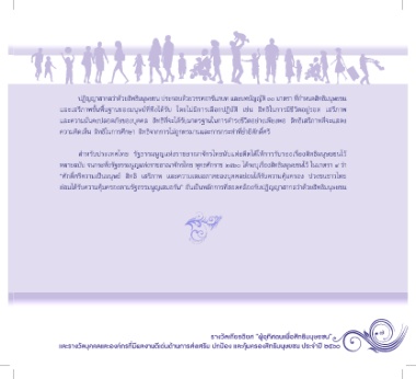 “ศักดิ์ศรีความเป็นมนุษย์ สิทธิ เสรีภาพ และความเสมอภาคของบุคคลย่อมได้รับความคุ้มครอง ปวงชนชาวไทย