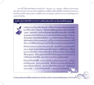 นอกจากนี้ ได้มีการจัดทำานิตยสารรายปักษ์ ชื่อว่า Myanmar Live Magazine เป็นนิตยสารฉบับภาษาพม่า