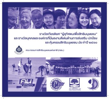 รางวัลเกียรติยศ “ผู้อุทิศตนเพื่อสิทธิมนุษยชน” และรางวัลบุคคลและองค์กรที่มีผลงานดีเด่นด้านการส่งเสริม ปกป้อง และคุ้มครองสิทธิมนุษยชน ประจํําปี ๒๕๖๐ คณะกรรมการสิทธิมนุษยชนแห่งชาติ (กสม.)