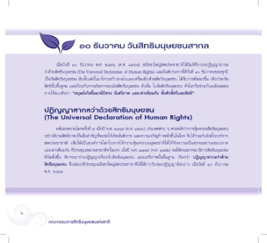 ว่าด้วยสิทธิมนุษยชน (The Universal Declaration of Human Rights) และมีมติประกาศให้วันที่ ๑๐ ธันวาคมของทุกปี