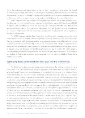 various impacts caused by business conducts, especially impacts on community rights, natural resources,