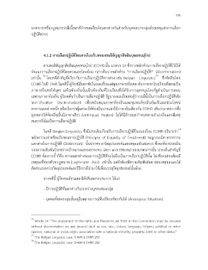 ในคดี Belgian Linguistics ซึ่งมีประเด็นเกี่ยวกับการเลือกปฏิบัติในเบลเยี่ยม ECtHR อธิบายวํา