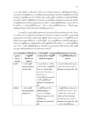ตารางเปรียบเทียบการใช้ค าเกี่ยวกับ “การเลือกปฏิบัติ” ตามกฎหมายสิทธิมนุษยชนระหว่างประเทศ