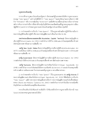 2. การกําหนดหลักการเกี่ยวกับ “Hate Speech” ไว๎ในกฎหมายเฉพาะ เชํน มลรัฐ Victoria มี