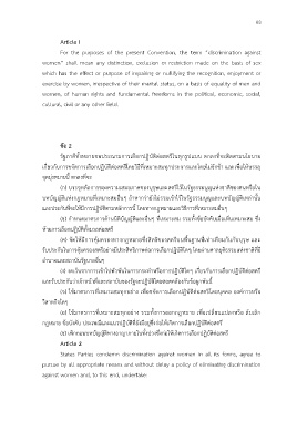 รัฐภาคีทั้งหลายขอประณามการเลือกปฏิบัติตํอสตรีในทุกรูปแบบ ตกลงที่จะติดตามนโยบาย