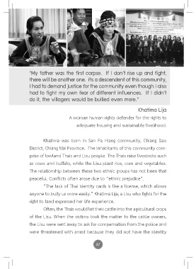 anyone to bully us more easily.” Khatima Lija, a Lisu who fights for the