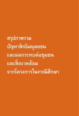 รายงานการติดตามการลงทุนโดยตรงของไทยในต่างประเทศ ผลกระทบต่อชุมชน สิ่งแวดล้อม และการละเมิดสิทธิมนุษยชน สรุปภาพรวม ปัญหาสิทธิมนุษยชน และผลกระทบต่อชุมชน และสิ่งแวดล้อม จากโครงการในกรณีศึกษา 152