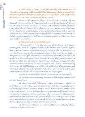 ด้านสิทธิมนุษยชนโดยภาคธุรกิจไทย รวมทั้งเพื่อให้ภาคประชาสังคมและบุคคลทั่วไป ทราบถึงบทบาทการเยียวยา