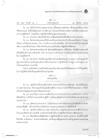ข้อ ๑9 ไม่กระทําการใดที่ก่อให้เกิดความเสื่อมเสียต่อเกียรติศักดิ์ของการดํารงตําแหน่ง