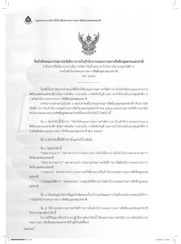 ส านักงานคณะกรรมการสิทธิมนุษยชนแห่งชาติจึงออกข้อบังคับไว้ ดังต่อไปนี้