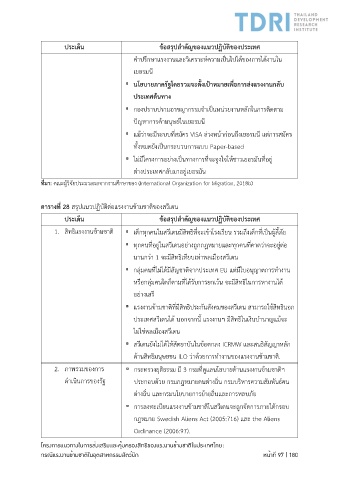 ตารางที่ 28 สรุปแนวปฏิบัติต่อแรงงานข้ามชาติของสวีเดน