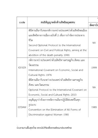 สัตยาบัน ปฏิญญา สัตยาบัน ปฏิญญา สัตยาบัน ปฏิญญา สัตยาบัน ปฏิญญา 1990 1992 2009 NA ✓ 1971 1973 1992 1999 ✓ ✓ NA NA NA NA 1980 1985 1984 1985 ✓ ✓ ✓ หน้าที่ 101 | 180