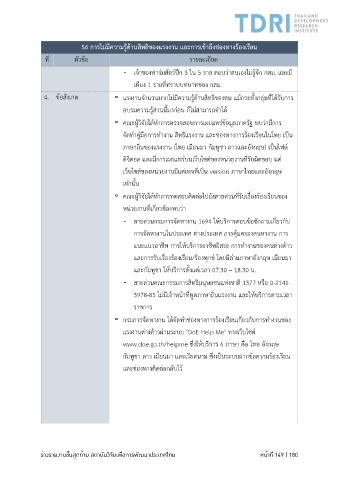 ร่างรายงานขั้นสุดท้าย สถาบันวิจัยเพื่อการพัฒนาประเทศไทย หน้าที่ 149 | 180