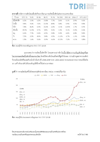 ตารางที่ 3 อัตราการเติบโตเฉลี่ยต่อปีของปริมาณการผลิตเนื้อสัตว์แต่ละประเภทของไทย