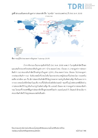 รูปที่ 10 แผนที่แสดงระดับมูลค่าการส่งออกสัตว์ปีก “ทุกชนิด” ของประเทศต่างๆ ปี 2561 (ค.ศ. 2018)