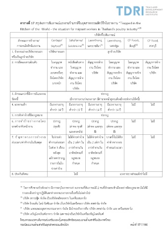 ตารางที่ 17 สรุปผลการสัมภาษณ์แรงงานข้ามชาติในอุตสาหกรรมสัตว์ปีกในรายงาน “Trapped in the