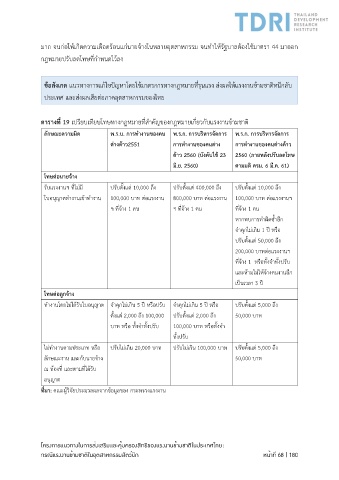 ตารางที่ 19 เปรียบเทียบโทษทางกฎหมายที่สำคัญของกฎหมายเกี่ยวกับแรงงานข้ามชาติ