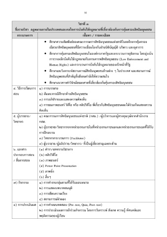 ชื่อรายวิชา กฎหมายภายในประเทศและกลไกการบังคับใช้กฎหมายที่เกี่ยวข้องกับการคุ้มครองสิทธิมนุษยชน