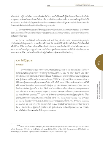 5) ความมีศักดิ์ศรี (Dignity) 227 นอกจากนี้ ยังมีตราสารระหว่างประเทศด้านผู้สูงอายุที่ส�าคัญ ได้แก่