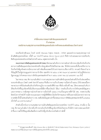 คำาชี้แจงคณะกรรมการสิทธิมนุษยชนแห่งชาติ