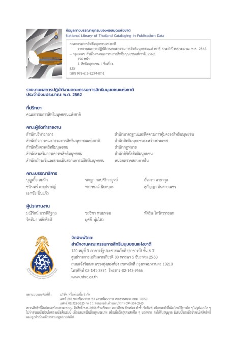 -- กรุงเทพฯ: ส�านักงานคณะกรรมการสิทธิมนุษยชนแห่งชาติ, 2562.