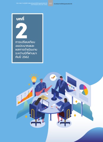 รายงานผลการปฏิบัติงานคณะกรรมการสิทธิมนุษยชนแห่งชาติ 50 คณะกรรมการสิทธิมนุษยชนแห่งชาติ ประจำ�ปีงบประมาณ�พ.ศ.�2562 บทที่ 2 การเปรียบเทียบ งบประมาณและ ผลการดําเนินงาน ระหว่างปีที่ผ่านมา กับปี 2562